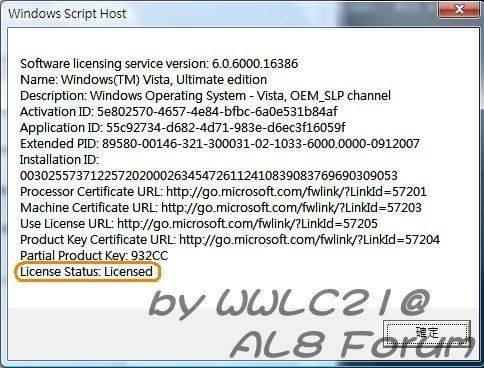 3. 開COMMAND PROMT, 打SLMGR.VBS -dlv 檢查是否已啟動